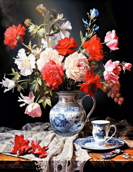 Алмазная вышивка «Шикарный букет из разных цветов на столе» 40x50 см